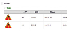 SOS・衝撃・危険運転が発生した際に、画面やメールでアラートを通知します。